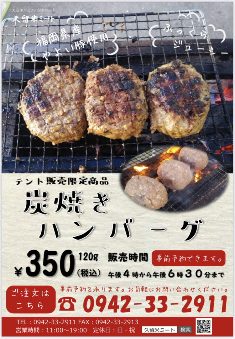 テント販売限定商品の炭焼きハンバーグのチラシができました。
