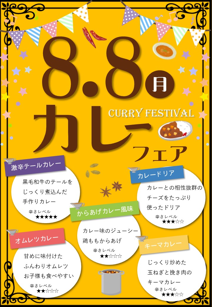2022年8月8日(月)、カレーフェアを行います(^^)/