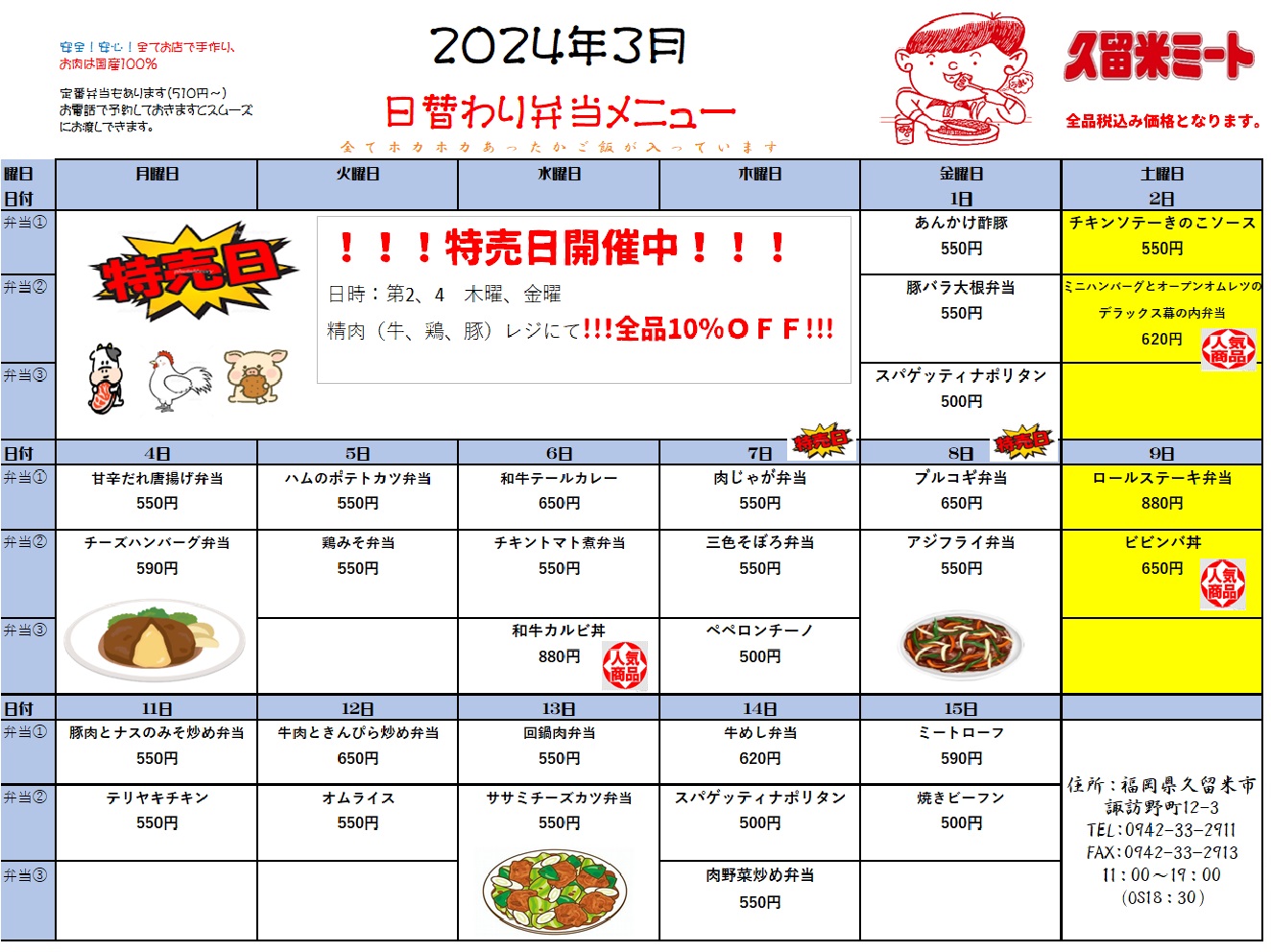 3 012024 2024年3月前半の日替わりメニュー お知らせ Tweet Share Hatena Pocket RSS feedly Pin it 2023年12月後半の日替わりメニュー 前の記事 2024年3月後半の日替わりメニュー 次の記事