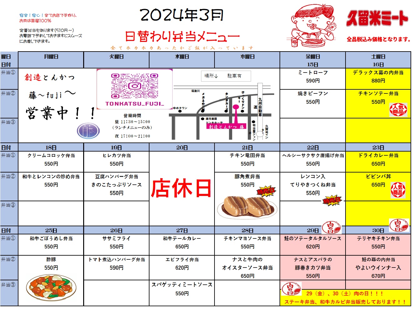 3 192024 2024年3月後半の日替わりメニュー 日替わり弁当 Tweet Share Hatena Pocket RSS feedly Pin it 2024年3月前半の日替わりメニュー 前の記事 2024年4月前半の日替わりメニュー 次の記事