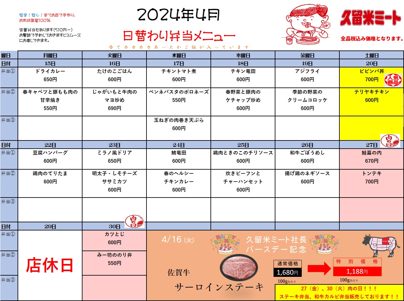2024年4月前半の日替わりメニュー